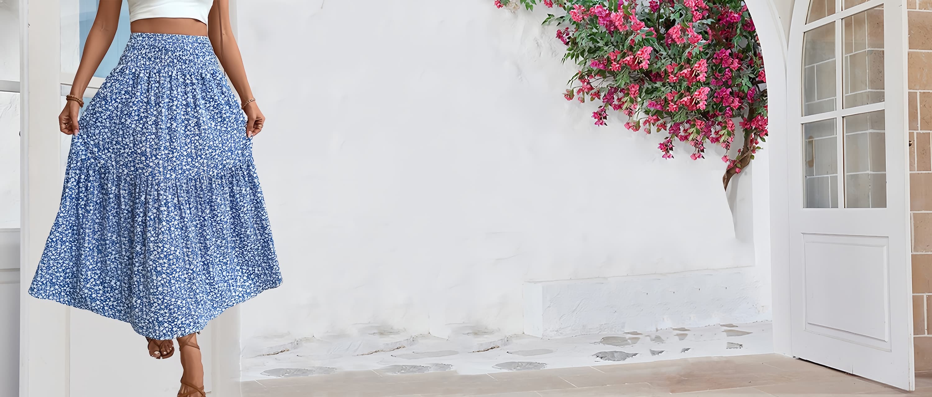 Women's Printed Waist Ruffled Layered Maxi Skirt